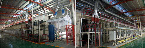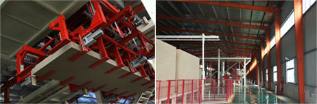 聯合迪芬巴赫共同研發引進原裝進口4頭鋪裝機,芯層5盤式膠塊分離裝置拋輥,和4鼓條輥鼠籠式裝置的組合,表層氣流式+36軸機械粗細輥搭配組合鋪裝,使成品板材均質,表層平滑細膩;
